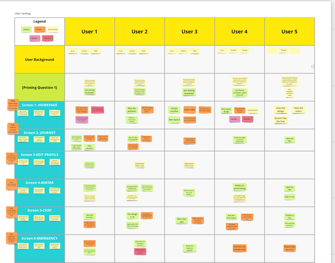 Users generally find the layout and design intuitive, but they suggest improvements in colour schemes, fonts, and interaction options (e.g., avatars and GIFs). While avatars and chat functionalities are well-received, the emergency screen requires clearer instructions and functionality refinement.